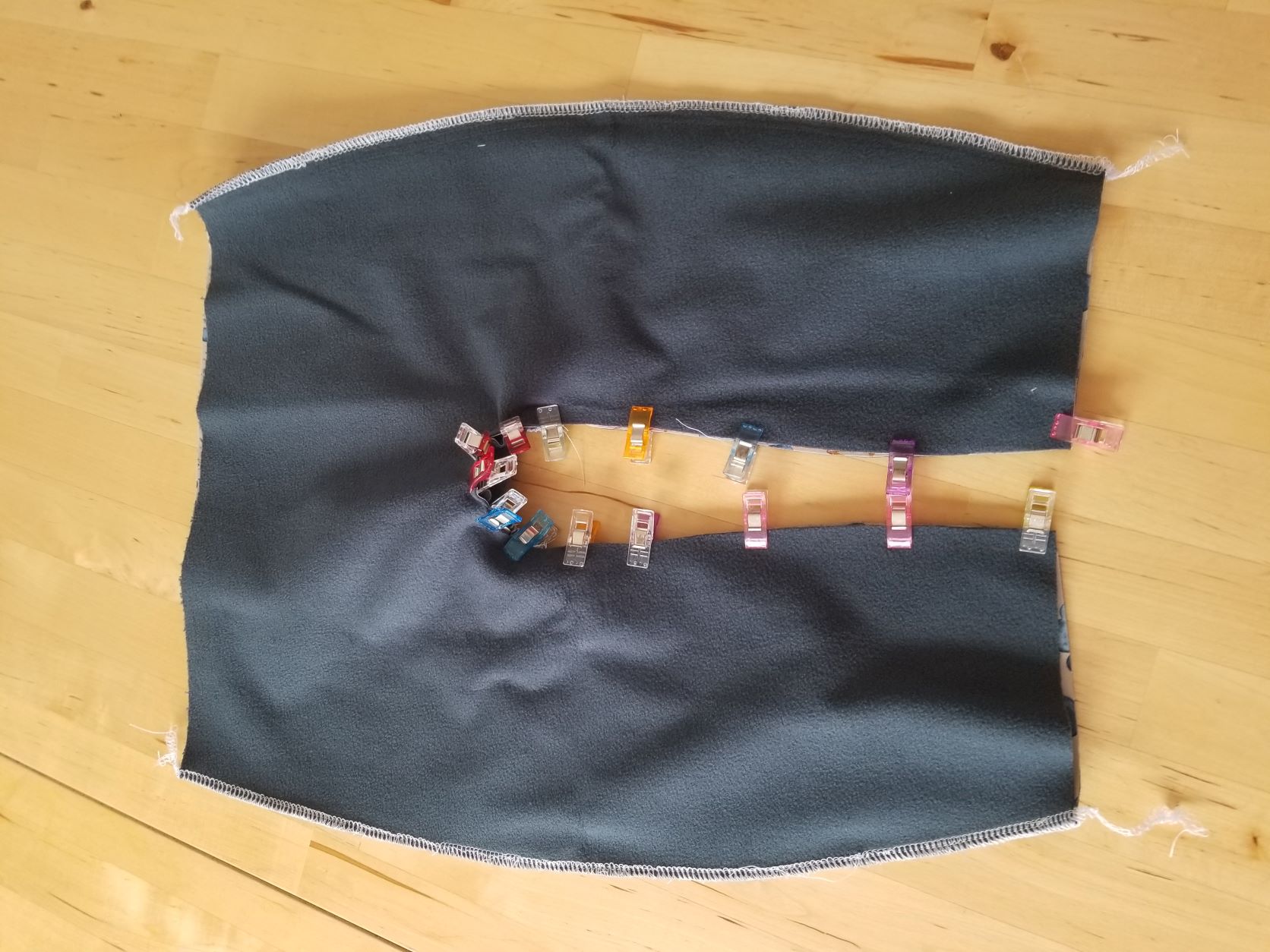 Erst die Außenkanten und dann die Innenkanten zusammen nähen. (Es bietet sich an die Teile bei Softshell nur zu Knipsen und nicht mit einer Nadel zu stecken, damit der Stoff möglichst intakt bleibt).