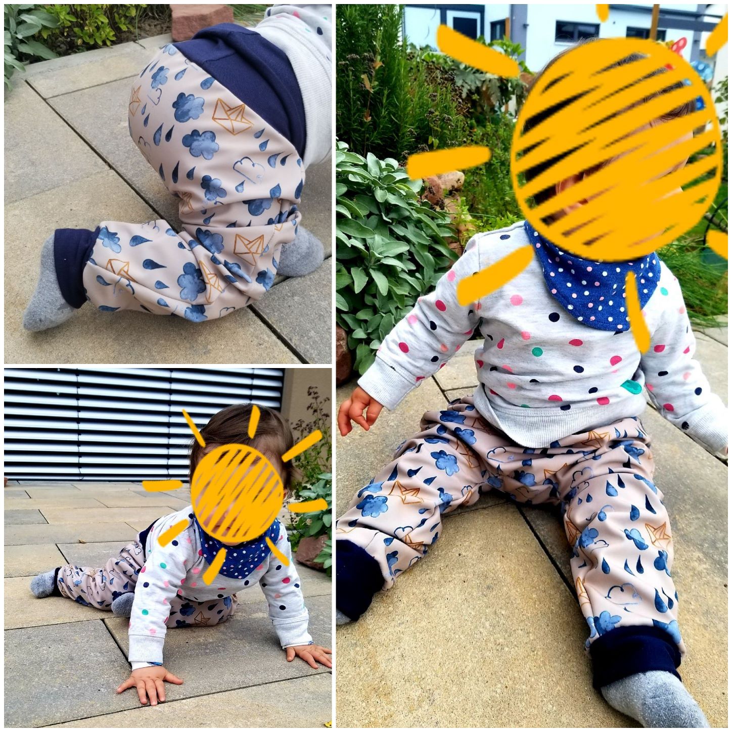 Ich habe mich bewusst dafür entschieden vorerst keine Verstärkung an die Knie oder den Poppes zu nähen, da ich erstmal sehen möchte wie robust der Stoff an sich ist. Für ein weiteres Modell ist es aber im Hinterkopf dies zu tun, ebenso wie ggf. eine Latzhose draus zu machen - je nach dem wie doll die Hose nun beim Rumkriechen rutscht 😉